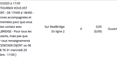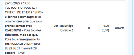 Comme d'habitude, cliquez sur "inscriptions tournois" et choisissez le tournoi REALBRIDGE du JOECKER